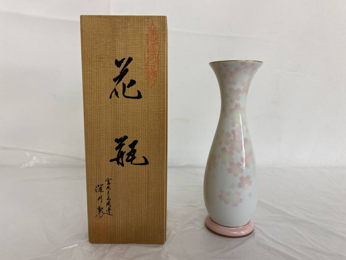 - 有田焼 宮内庁御用達 深川製磁 花瓶 一輪挿し 花入 花器 花生 ひめ桜 百合型花入 白磁 金彩 茶道具 華道具 共箱