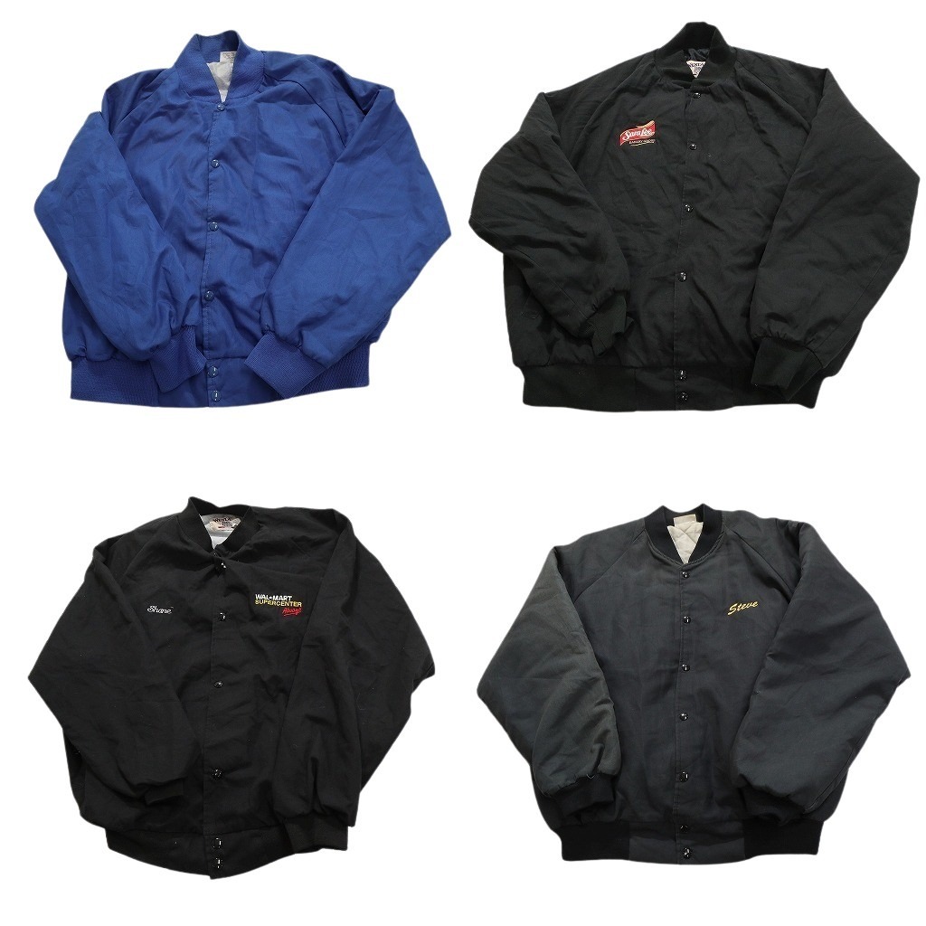 > 古着卸 まとめ売り スタジャン型 ジャケット 4枚セット (メンズ XL ) スナップボタン ワンポイント 無地 中古 古着 NC2264