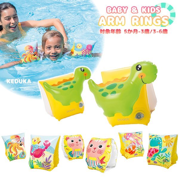 > アームリング ベビー キッズ 浮輪 プール 浮き輪 水遊び 子供 赤ちゃん アニマル 海の生き物 恐竜 猫 浮き具 INTEX インテックス 腕用