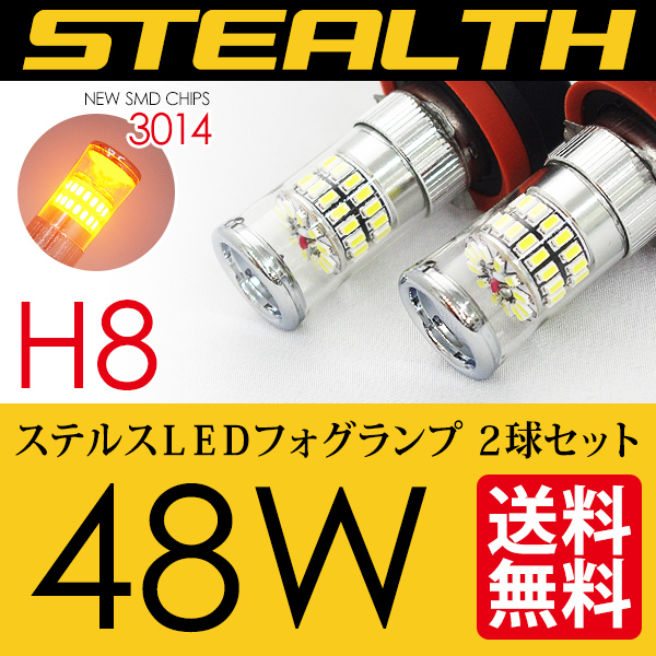 > H8 LED 48W フォグランプ / フォグライト オレンジ系 黄 バルブ 後付け ポン付 簡単 美光 国内 点灯確認後出荷 ネコポス* 送料無料