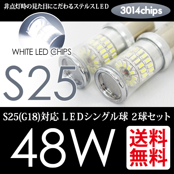 - S25 LED バルブ 48W 白 ホワイト バックランプ 超美光 ステルス 180度 平行ピン 国内 点灯確認 検査後出荷 ネコポス 送料無料
