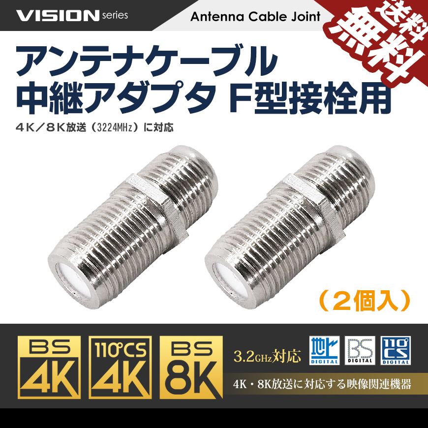 - アンテナケーブル 中継アダプタ 2個セット 611002 F型 接栓用 4K8K対応 同軸ケーブル 地デジ BS CS TV 延長 ネコポス 送料無料