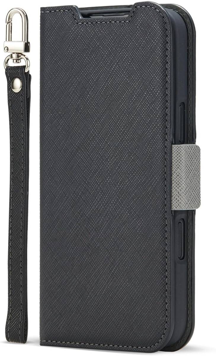 - iPhone 17 Pro Max 手帳型ケース カード入れ スタンド ストラップ付き 人工革 収納 携帯ケース カバー iPhone17 ProMax ブラック