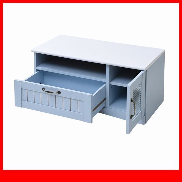 - テレビ台★フレンチカントリー/テレビ台 テレビボード テレビラック/コンパクト 幅80cm 32型/引出し 扉付き 収納/青 白/ffca-0001/特価zz