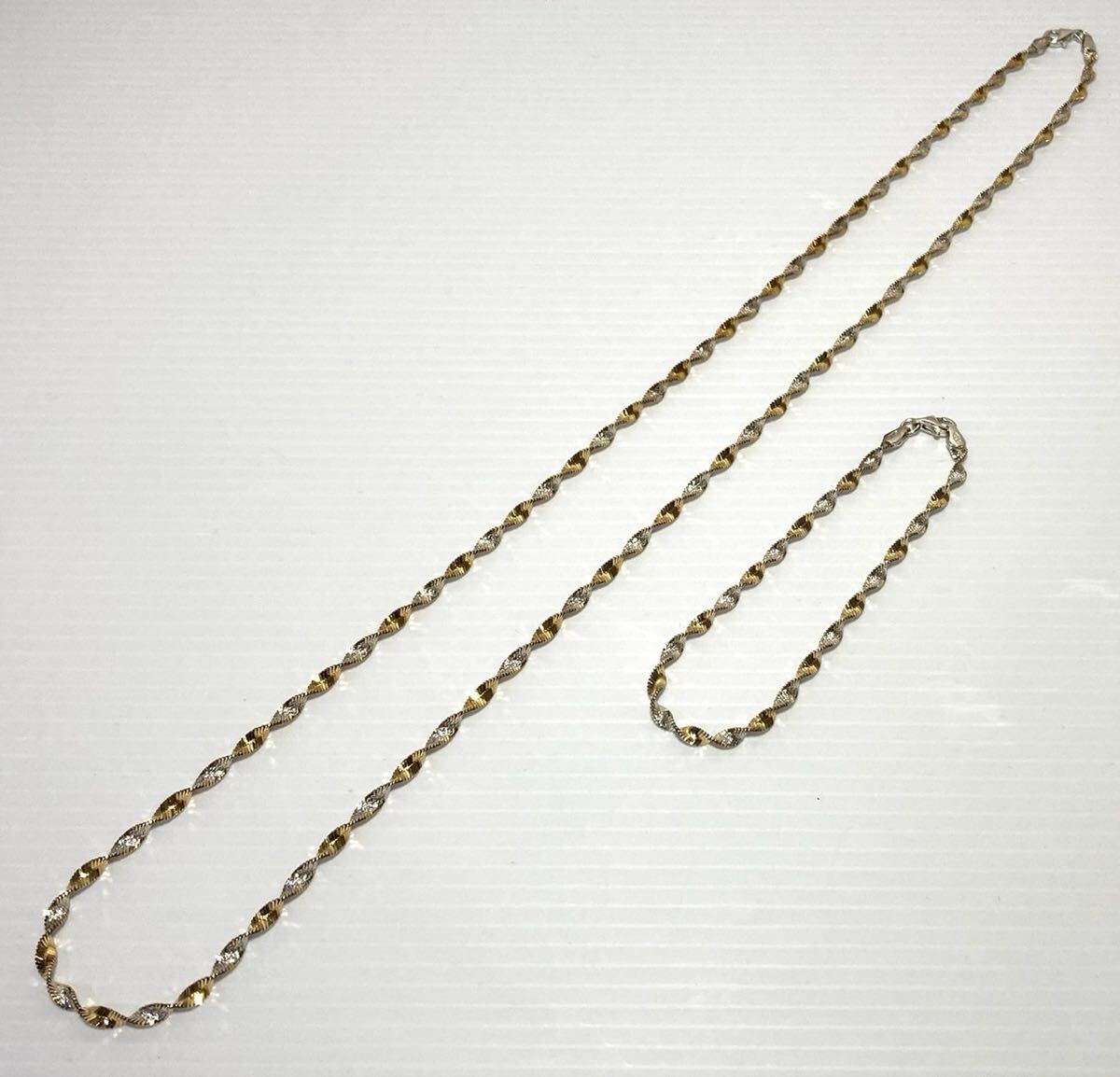 - KGNY5748 ネックレス ブレスレット セット コンビカラー SV925 シルバー ITALY スクリューデザイン 磁石反応無し アクセサリー 現状品