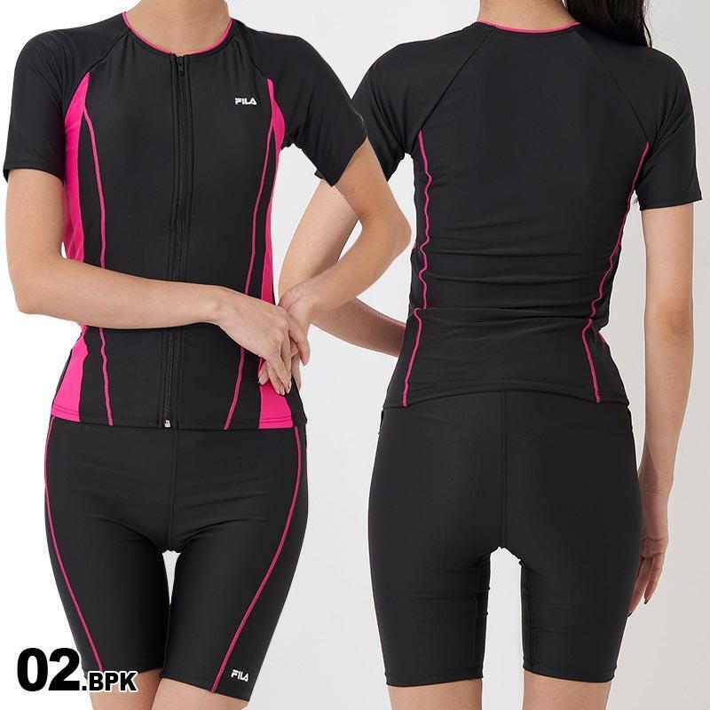 > 11号 Lサイズ 新品 FILA セパレーツ フィットネス水着 ピンク×黒 めくれ防止 レディース 半袖 フルジップ タンキニ 送料無料 313203