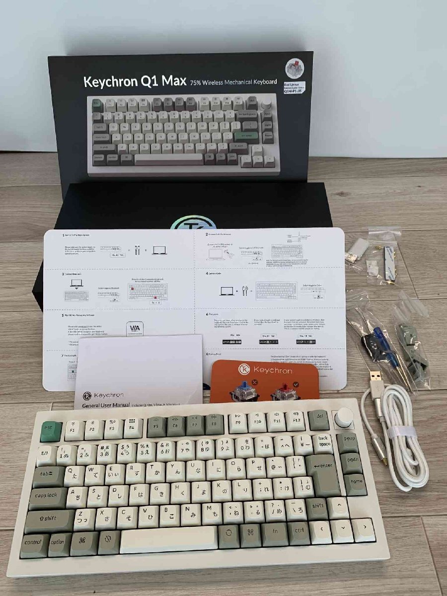 - 【美品】Keychron Q1 Max ワイヤレスキーボード 日本語配列 レイアウト75% ホワイト/グレ Q1M-P1-JIS【送料無料】
