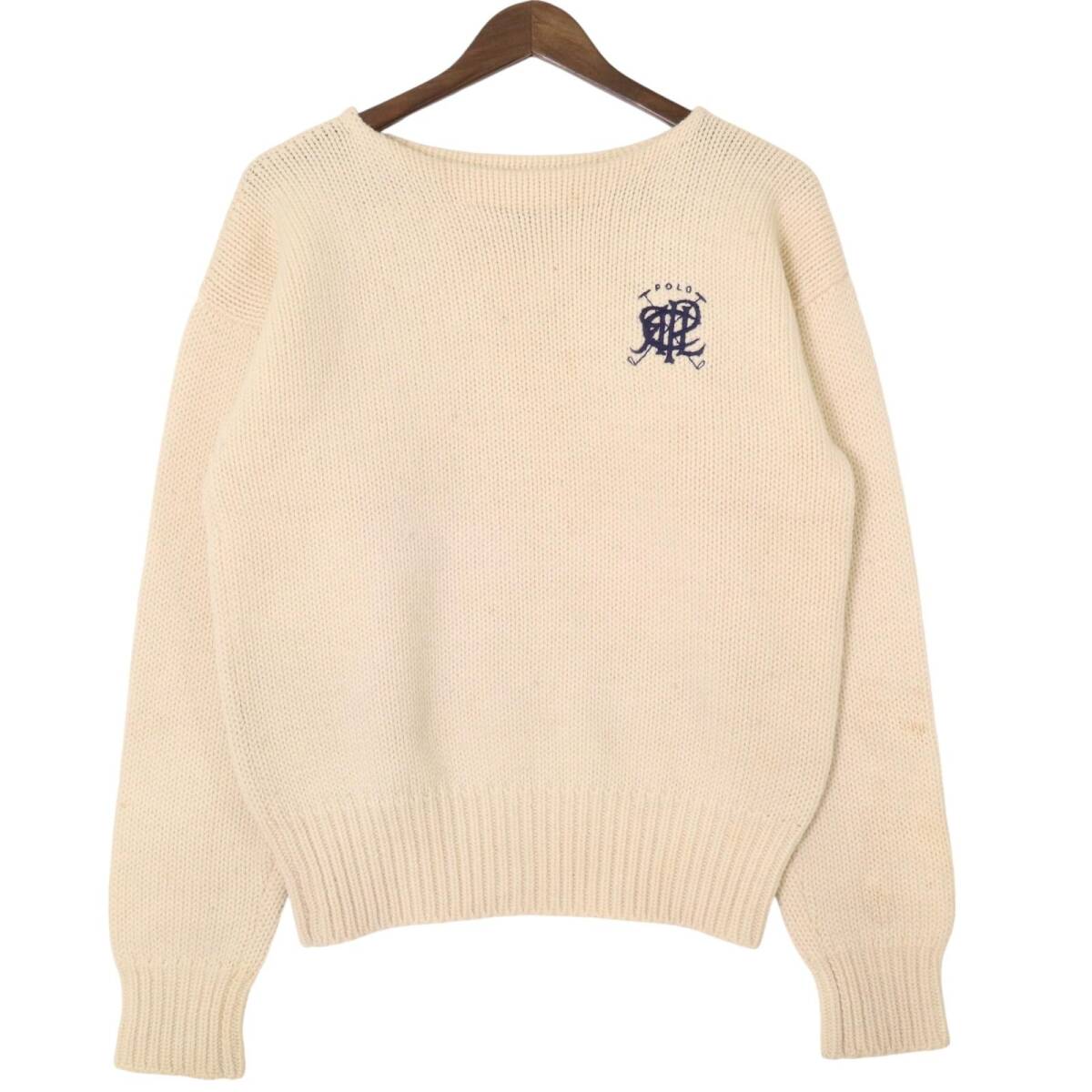 > 90年代 Polo by Ralph Lauren ポロ ラルフローレン ミドルゲージ ロゴセーター アイボリー (メンズ L) 中古 古着 A1489