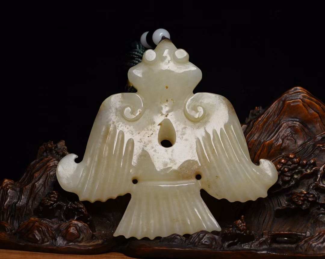 - 【超珍館蔵】和田玉製 細密彫 鳳佩 置物 賞物 古賞物 古董品 古美術品 時代物 旧家蔵出 稀少珍蔵品