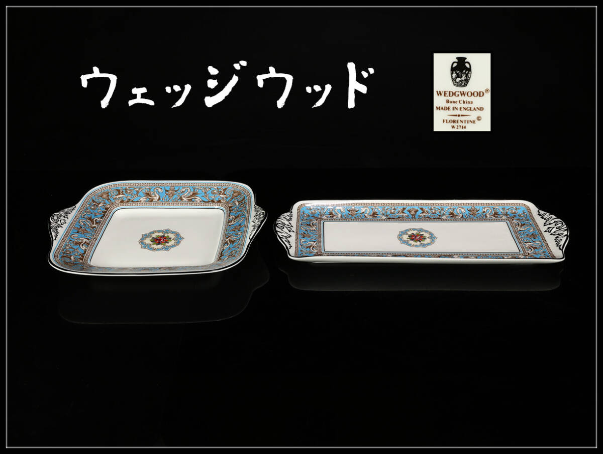 - 久1240 WEDGWOOD 【ウェッジウッド】 フロレンティーンターコイズ 大皿 長皿 2点 美品