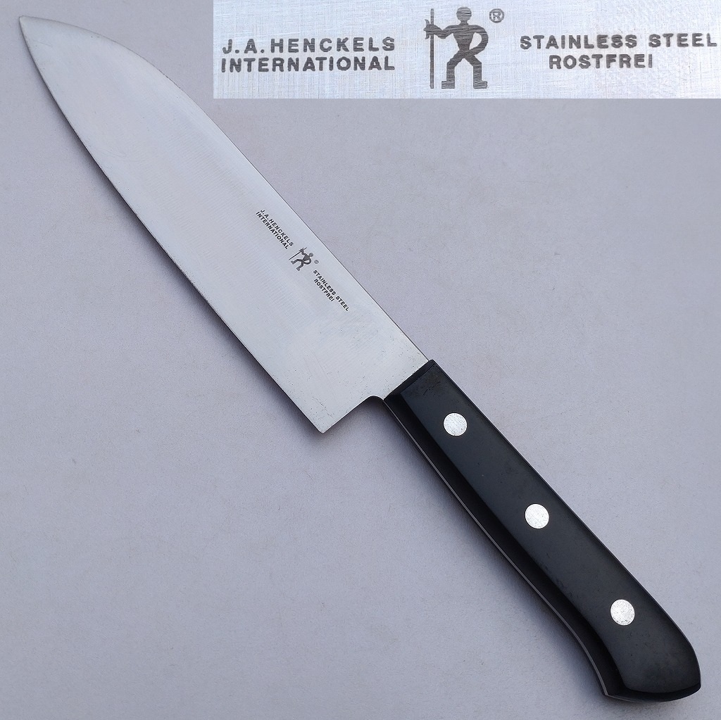 - 万能包丁 J.A.HENCKELS INTERNATIONAL STAINLESS STEEL ROSTFREI 刃長約175㎜ 両刃 洋包丁 三徳包丁 ヘンケルス ロストフレイ 【4653】
