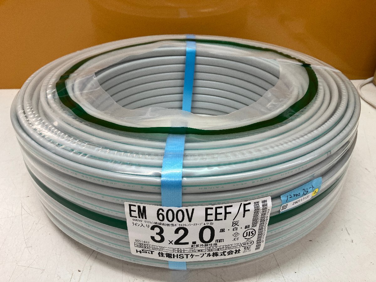 - 13★新品★住電HSTケーブル EM600V EEF/F 3×2.0mm ライン入り 3芯 黒白緑 600Vポリエチレン絶縁耐燃性シースケーブル平型 100M 電線 (倉a