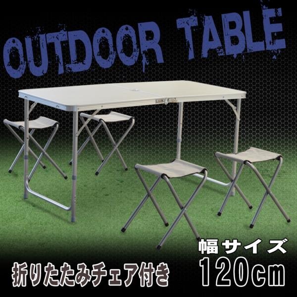 - チェア 4脚セット アルミテーブル レジャーテーブル 折りたたみテーブル アウトドア パラソル穴付き [キャンプ BBQ テーブル椅子セット]