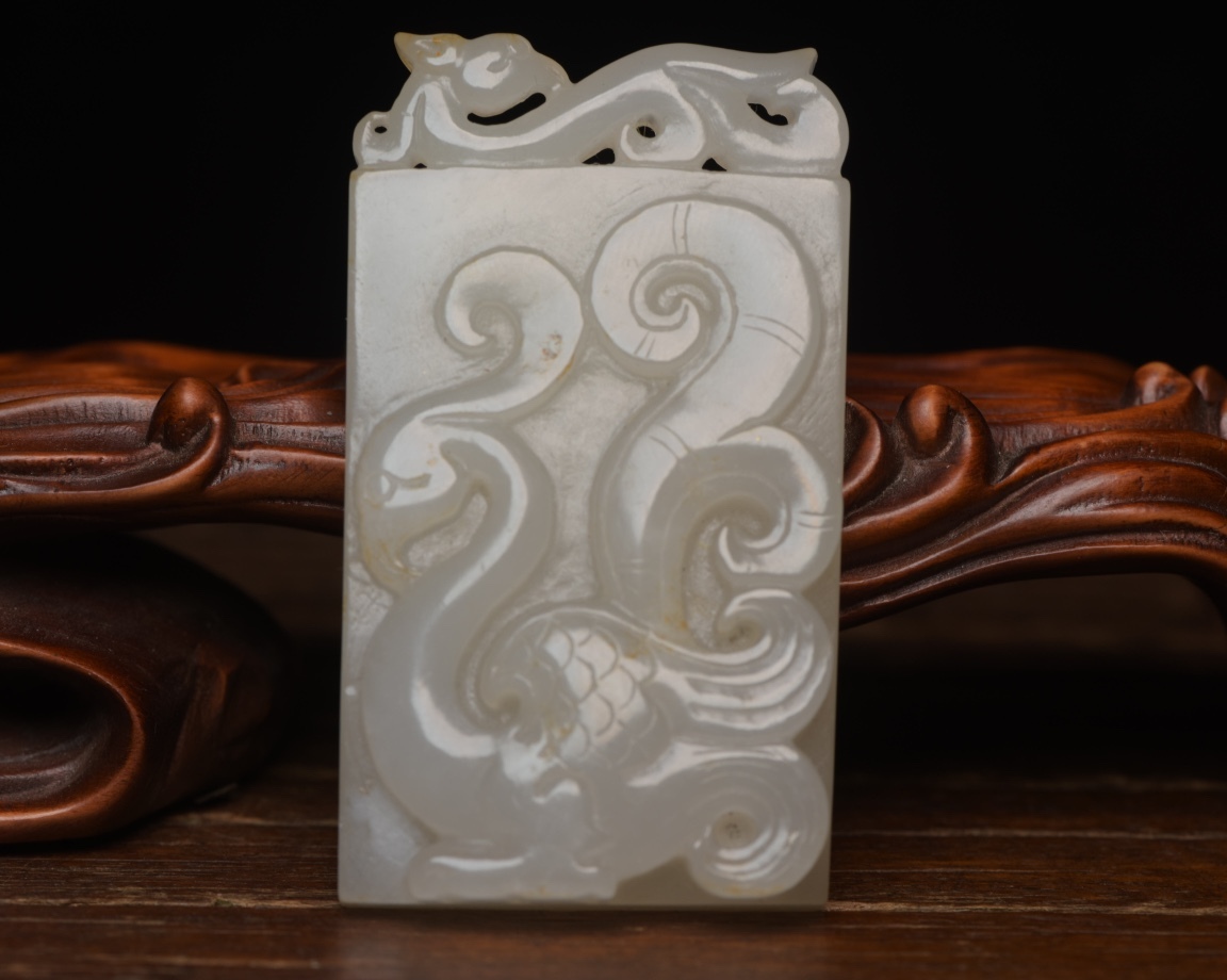 - 【超珍館蔵 】和田玉製 細密彫 龍鳳呈祥 置物 賞物 古賞物 古董品 古美術品 時代物 旧家蔵出 稀少珍蔵品