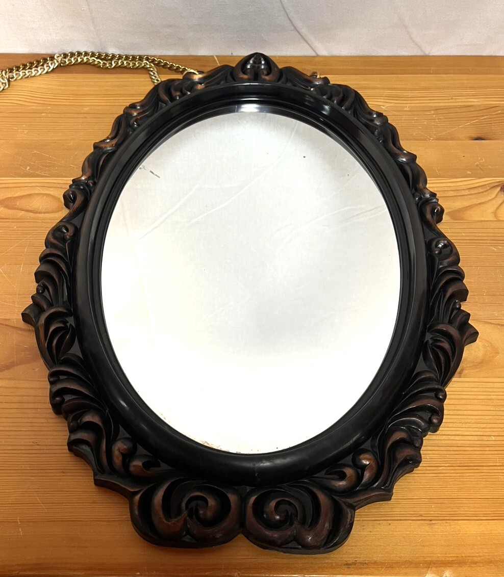- 【S260】昭和レトロ/アンティーク調ミラー/壁掛けミラー/ウォールミラー/壁掛け鏡/チェーン付き/鏡/吊るし/ビンテージ/中古