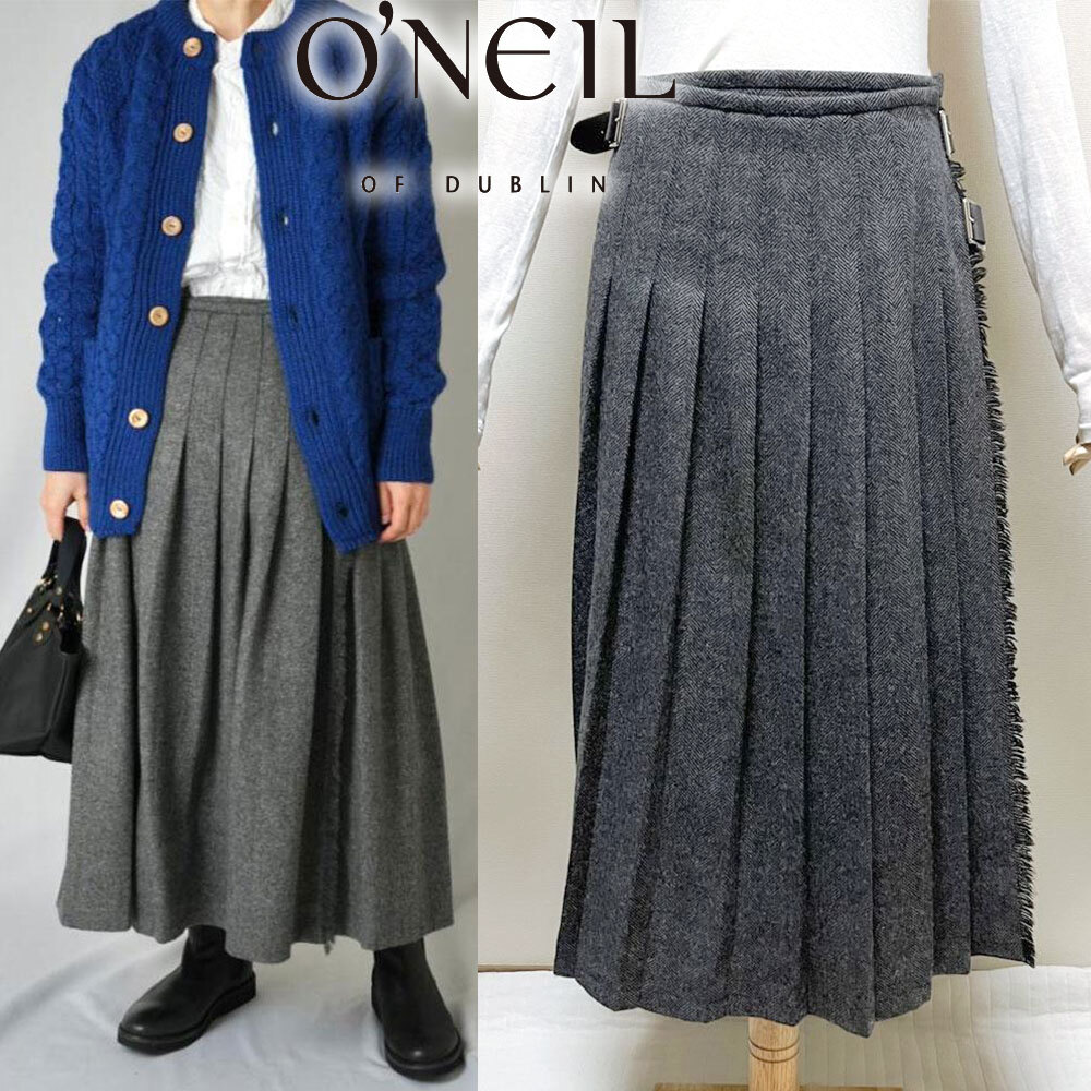 > O'NEIL of DUBLIN オニールオブダブリン 別注 ローウエスト ヘリンボーン ツイード プリーツラップ スカート