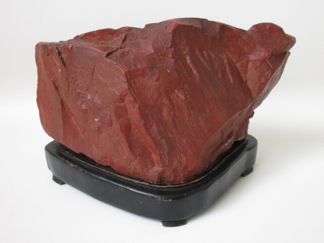 - 鑑賞石 佐渡 赤玉石 台座付 高さ 約 12cm 横幅 23.5cm 奥行 16cm 重量 5kg 検/ 赤石 原石 自然石 銘石 盆栽 盆景 盆石