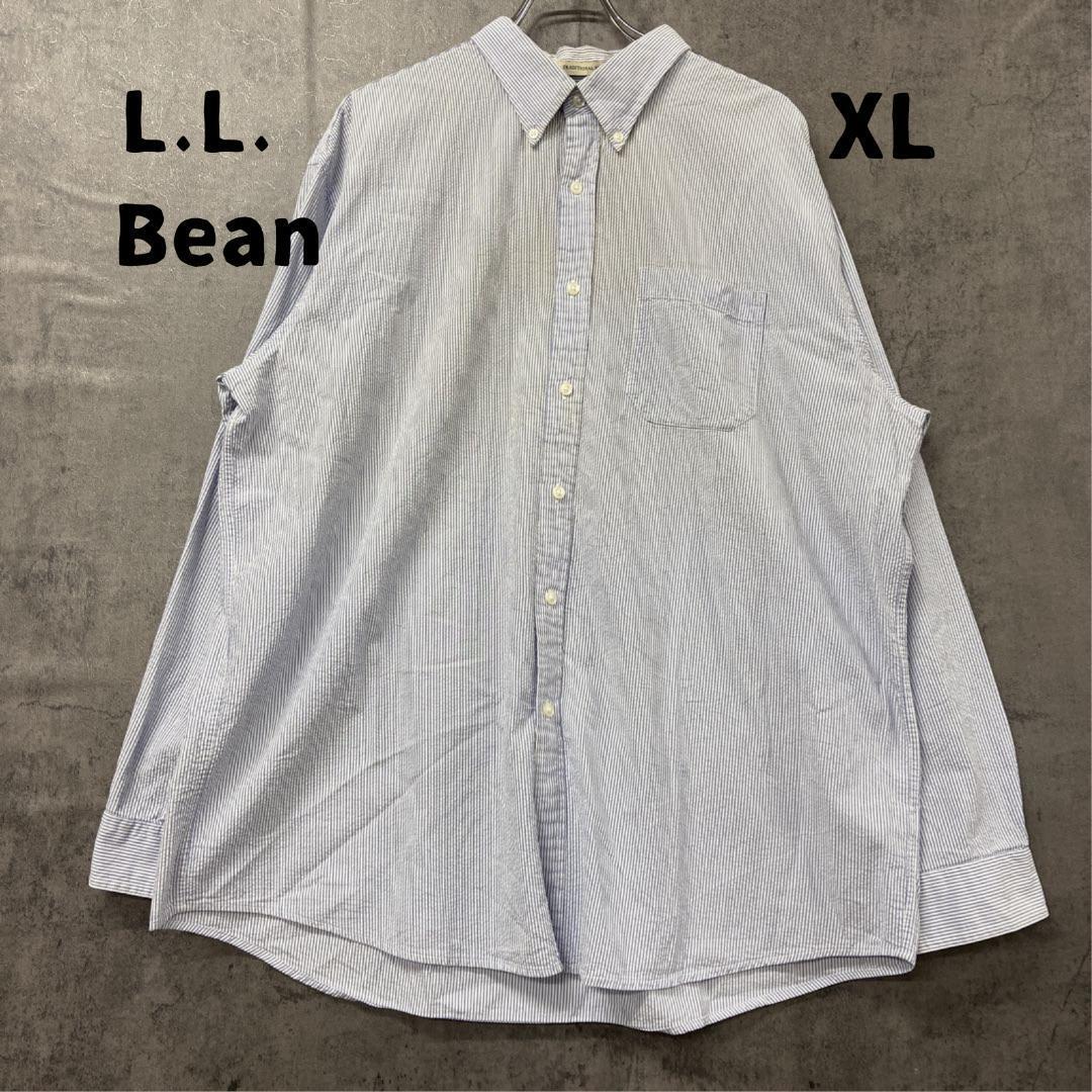 - エルエルビーン ヴィンテージ風 青白 ストライプ柄 コットンシャツ【6062】