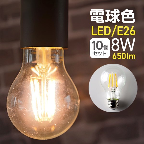- 【10個セット】LED電球 8W E26 電球色 PSE取得 40W形 フィラメント電球 ランプ 節電 省エネ おしゃれ インテリア 照明 安全 一年保証