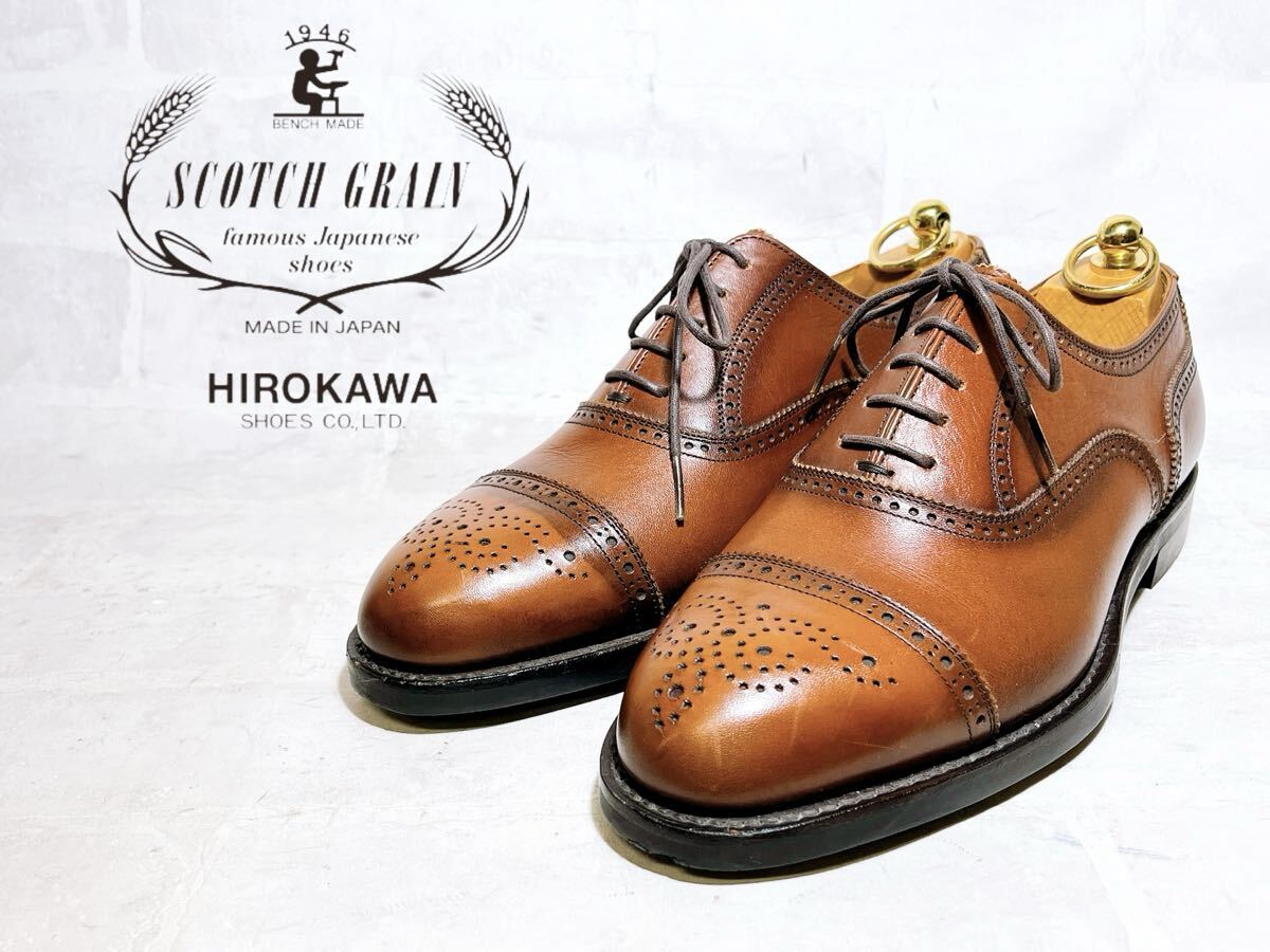 - 【美品】スコッチグレイン 上質 セミブローグ ビジネスシューズ 本革 レザー グッドイヤー製法 茶 24.5EEcm メンズ 紳士靴