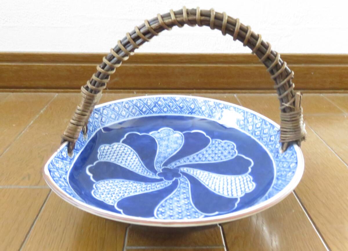 - 河本礫亭造 手付鉢 染付 菓子器 菓子鉢