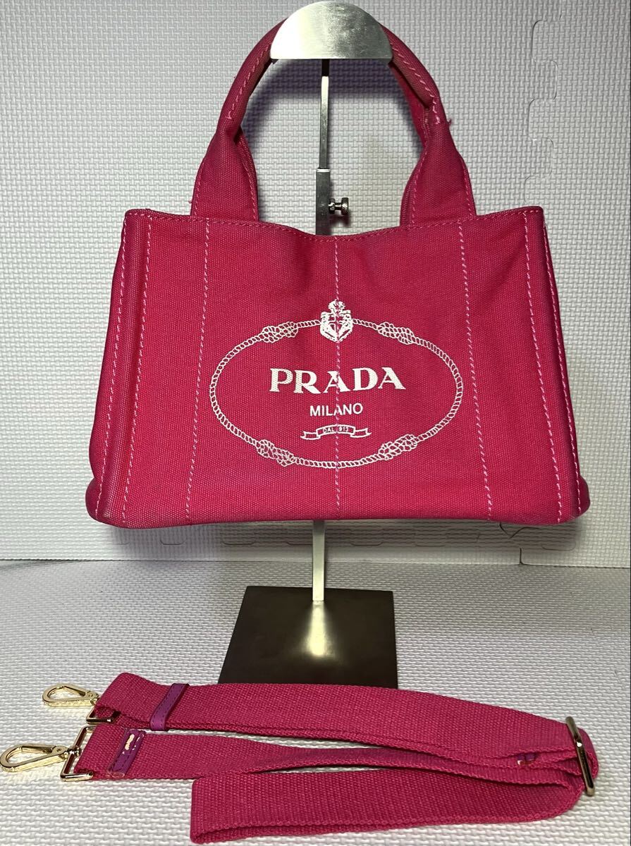 > KGNY5758 PRADA プラダ CANAPA カナパ トートバッグ ハンドバッグ ピンク キャンバス 2way ジャンク 現状品
