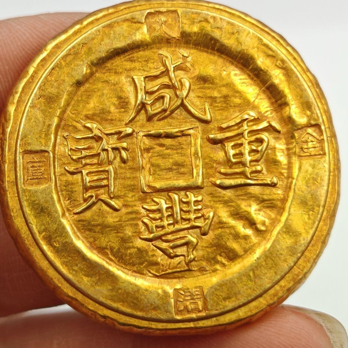 - 中国 清朝末年 骨董品 古物 コレクション 咸豊元宝 当千 方孔銅銭 彫花銅銭 金塊 骨董品 大型硬貨 外国金貨 貿易金 コイン 古銭 硬貨 蔵品