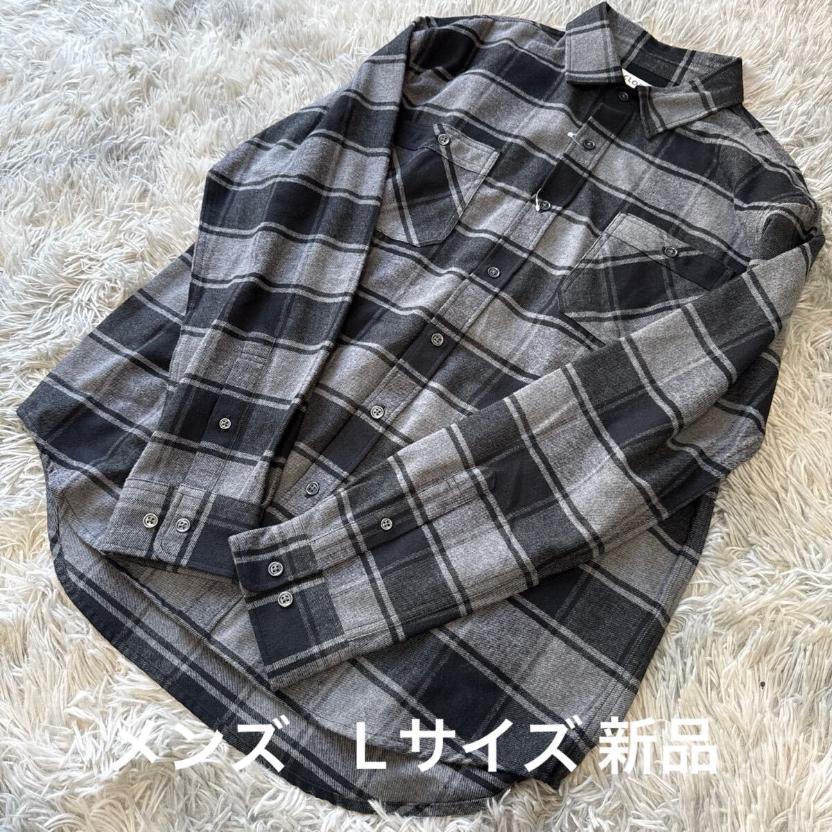 - メンズ ファイバーヒート黒グレーチェック起毛長袖シャツL★ゆうパケット配送可能★新品15