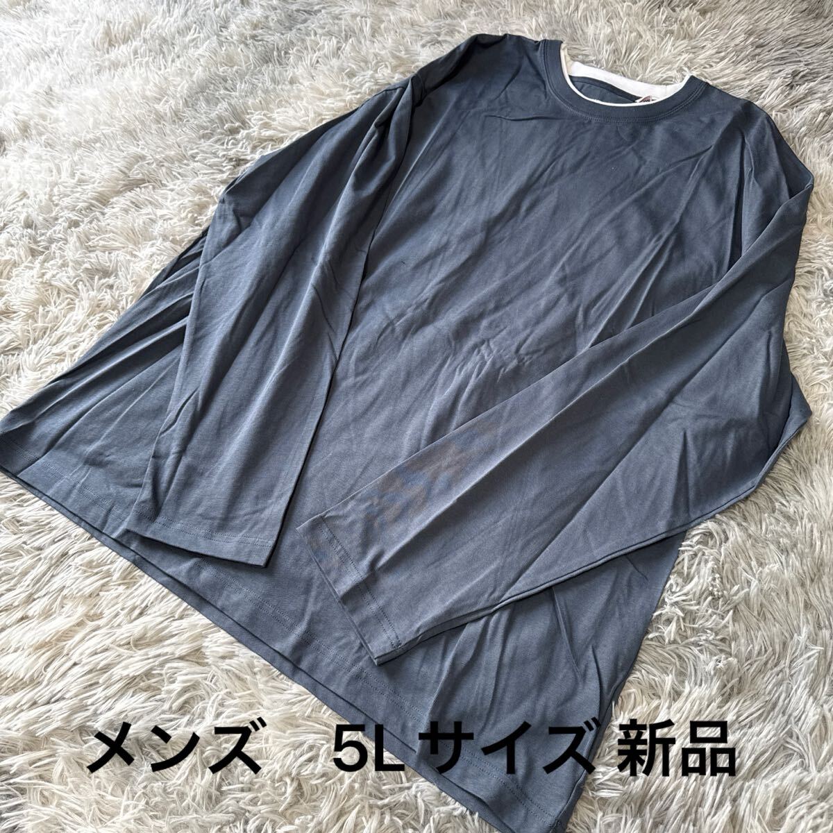 - 大きいサイズ メンズ 襟がよれにくい毛玉になりにくい重ね着風長袖Tシャツブルーグレー5L★ゆうパケット配送可能★新品15