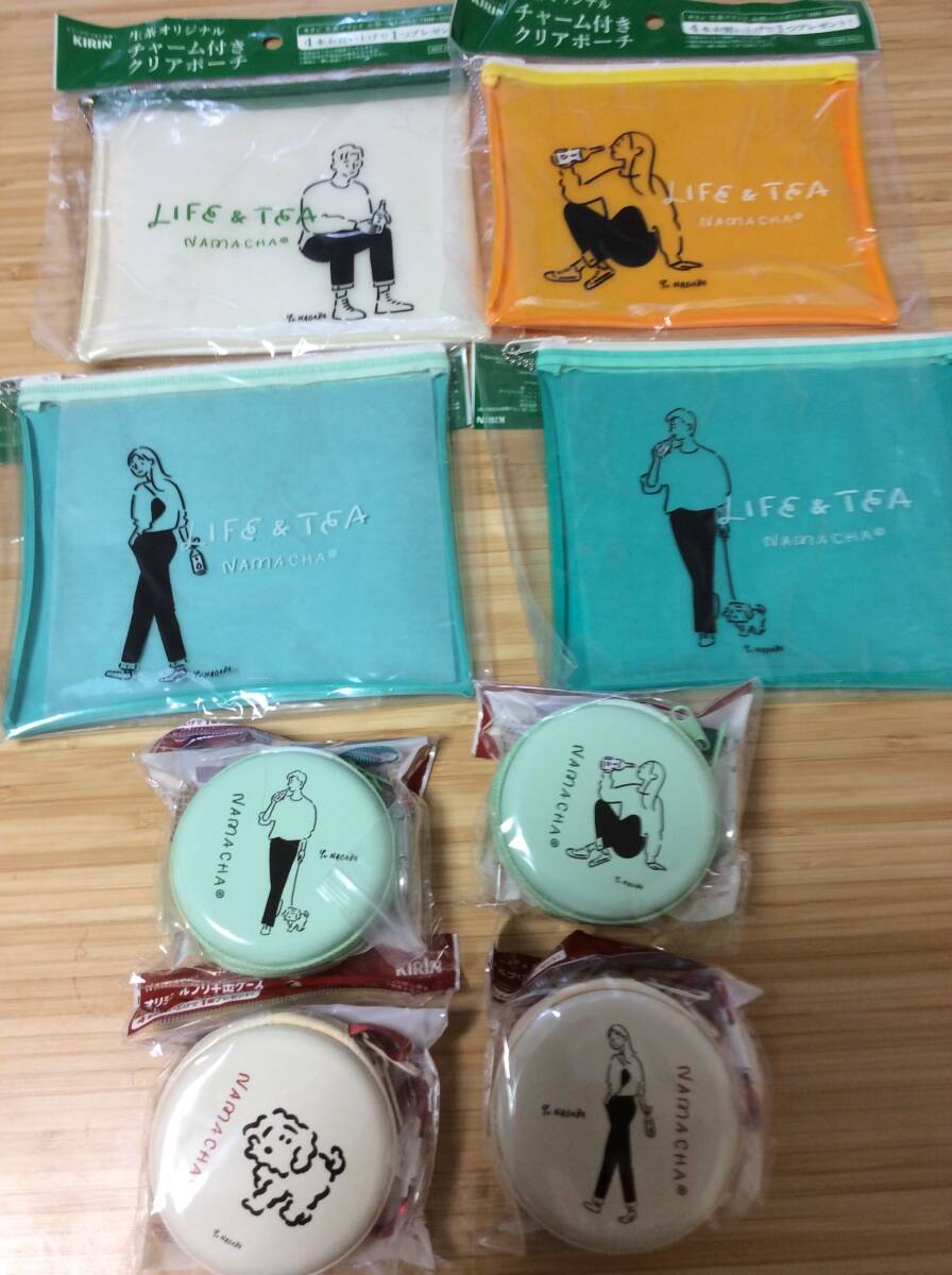 - 生茶 オリジナルチャーム付きクリアポーチ、ブリキ缶ケース 全4種類まとめて!