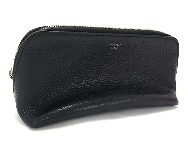 > CELINE セリーヌ レザー マルチポーチ マルチケース 小物入れ メイクポーチ 化粧ポーチ レディース メンズ ブラック系 DH0041