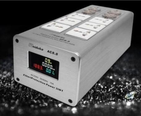 > Weiduka AC8.8 オーディオ用アドバンスト 10口電源タップ(POWER 3 IN 1) 3000W MAX パワーフィルター/ライトニングプロテクシ シルバー