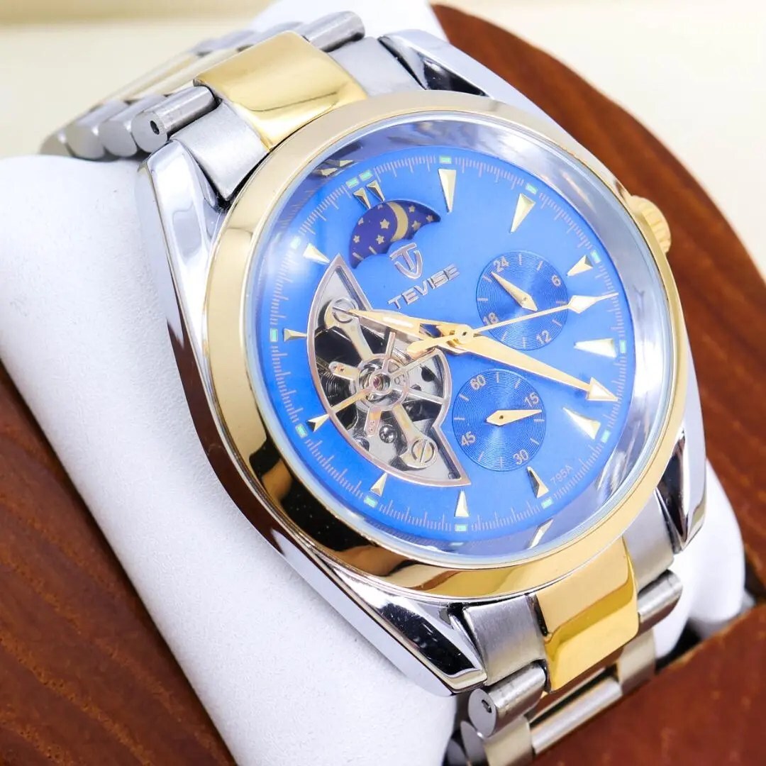 - 稼働 Tevise 腕時計 裏スケ 機械式 自動巻き サンムーン 2701