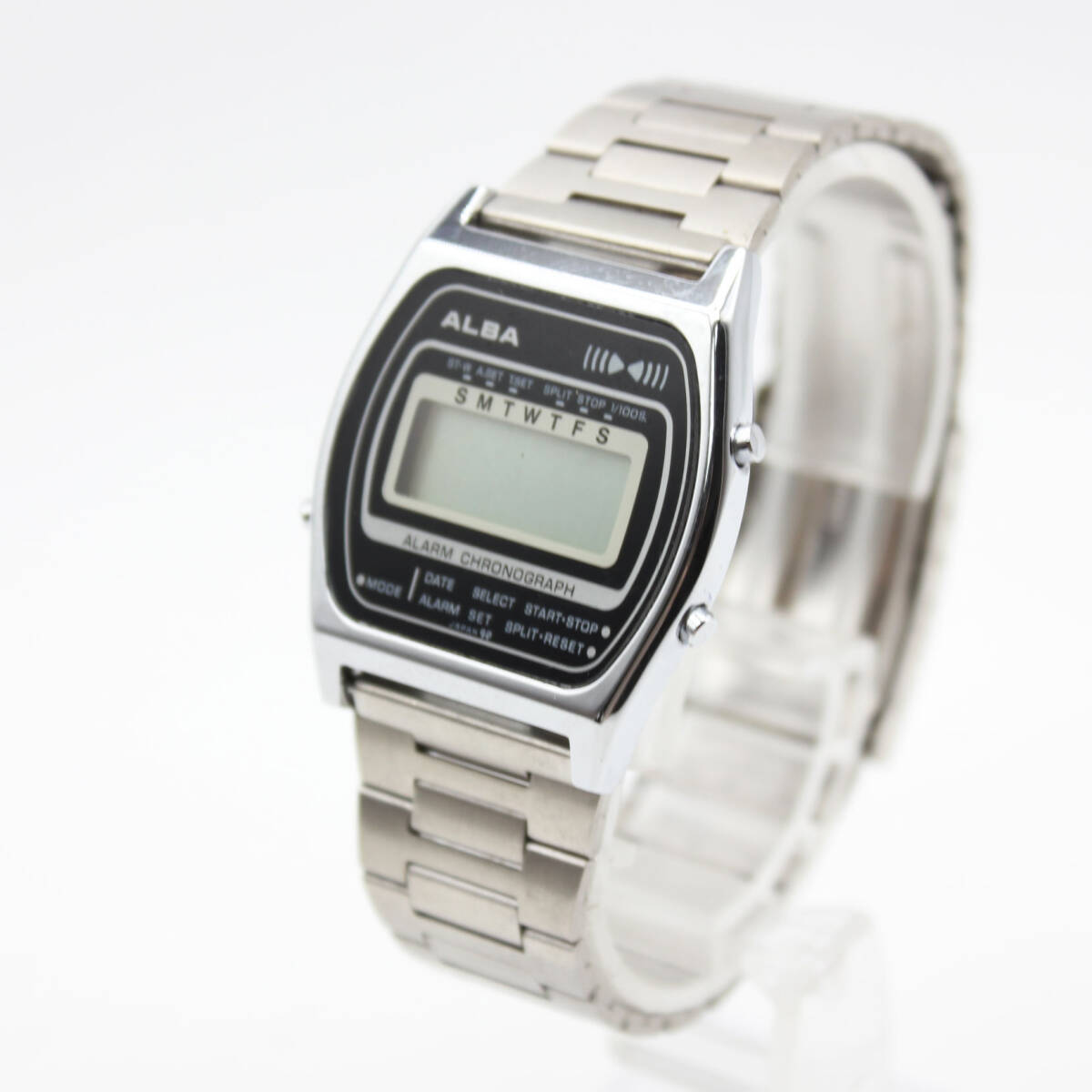 - W251009-09 SEIKO ALBA セイコー アルバ Y799-4100 メンズ腕時計 クォーツ デジタル ジャンク ブラック シルバー