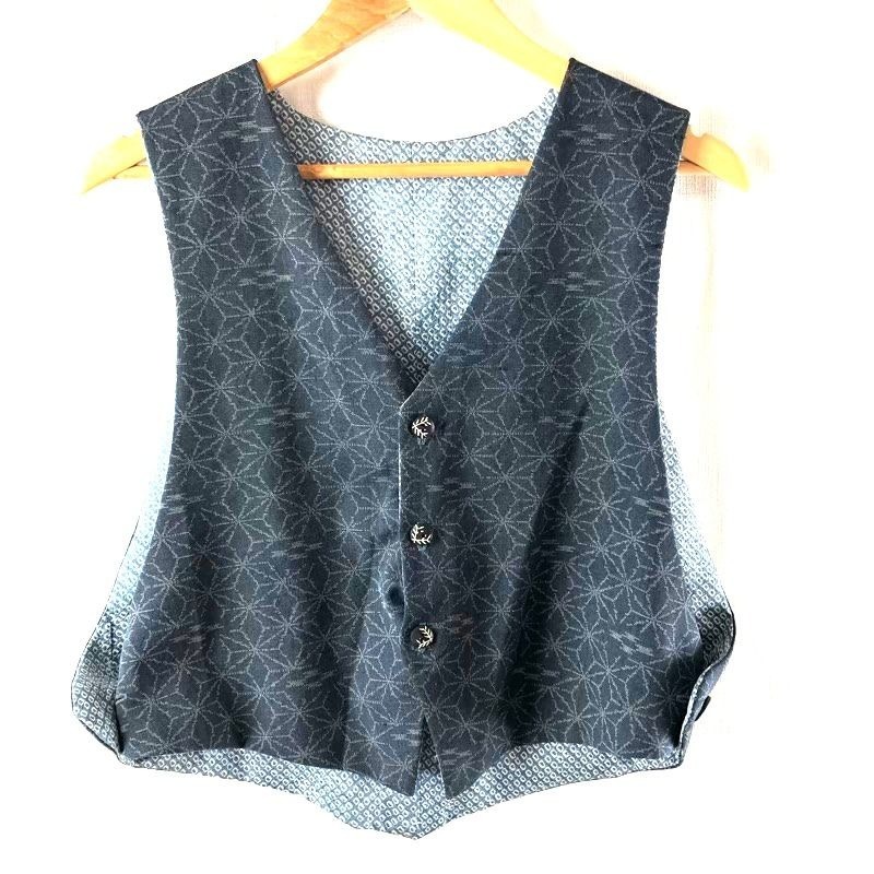 - ベスト 和柄 リバーシブル仕様 チョッキ ボタン 紺 白 2025091100017