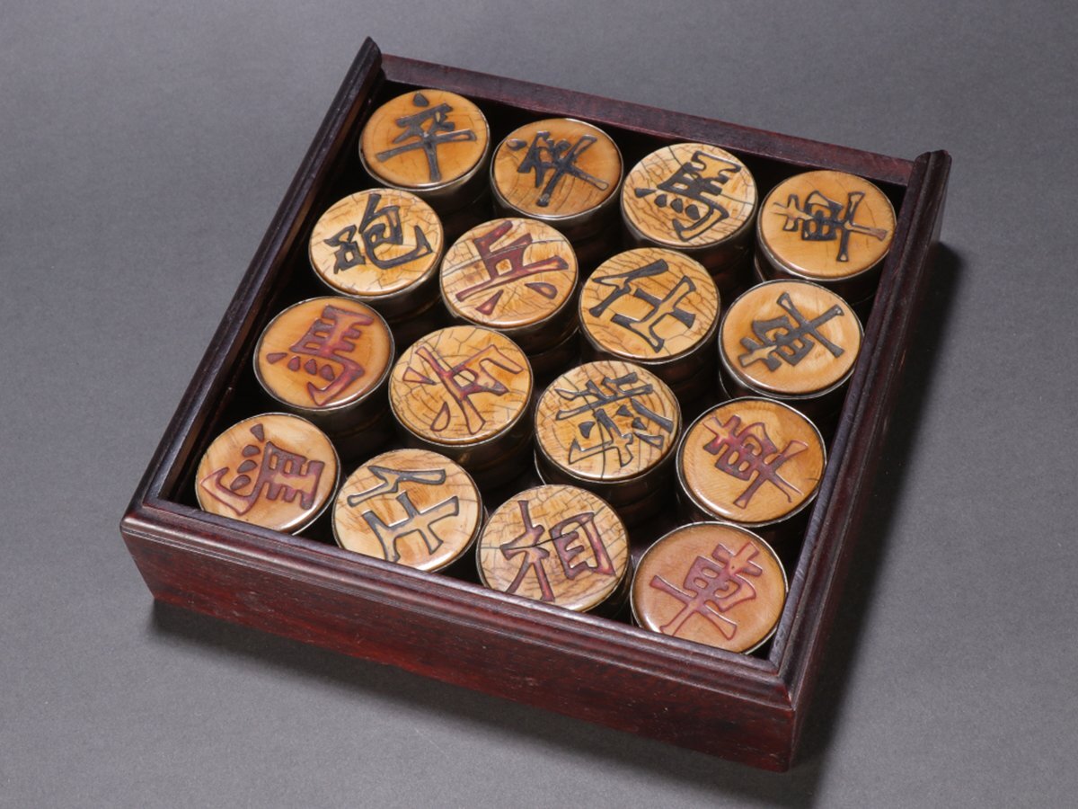 - 【安】清時代 特殊白材 象棋セット 共箱 極細工 古置物 古擺件 中国古美術 時代物 古董品 258