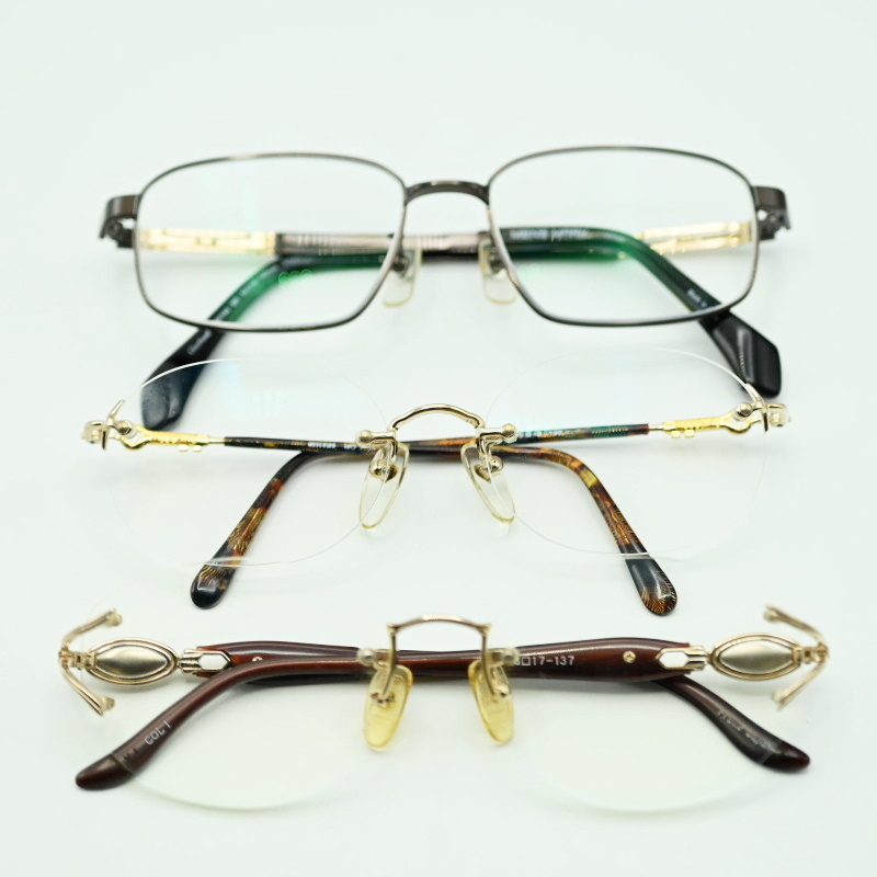 > Charmant/BALMAIN/MOSCHINO シャルマン/バルマン/モスキーノ メガネ 3点セット 度入り ブラウン/ブラック/ゴールド K10-k020