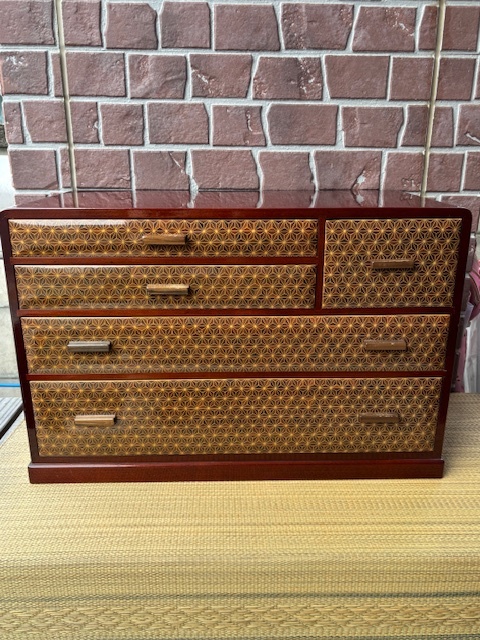 - 逸品 伝統工芸品 箱根寄木細工 麻の葉文様 民芸 抽斗 引き出し【東京 直接引取歓迎】 検 煎茶棚 飾り棚 茶箪笥 水屋 和家具 二宮義之