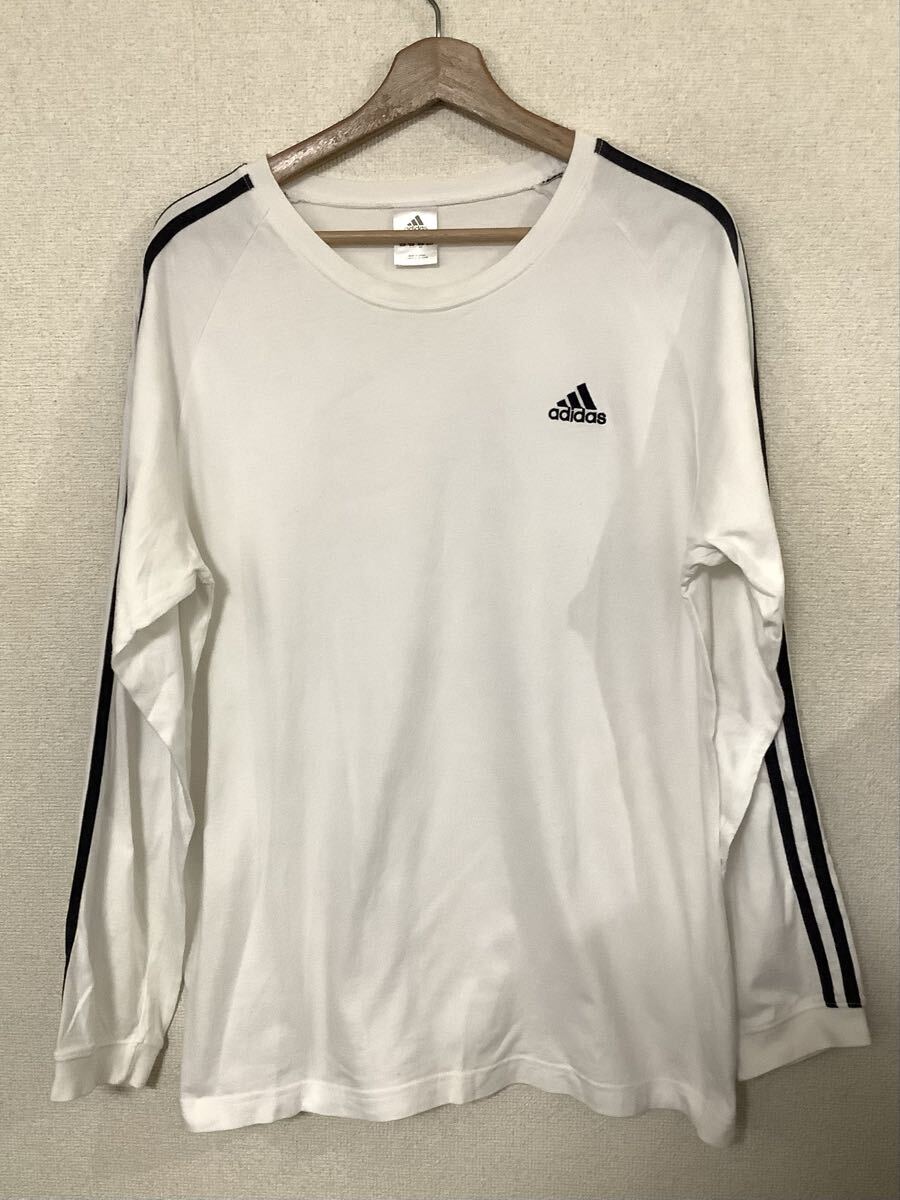 > adidas アディダス 長袖Tシャツ トップス ホワイト ロンT ロゴ刺繍 サッカー スポーツウェア メンズ 白 XO