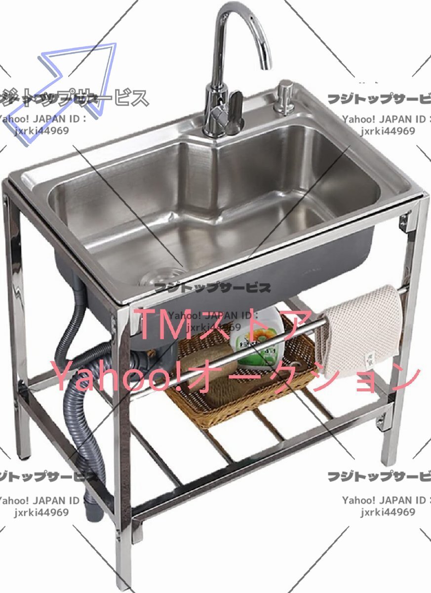 > ンシンク ステンレス製 流し台 丈夫 軽量 簡易流し台 屋外 工場 農園でも 手作りシンク 大容量シンク コンパクト 幅61x奥行46x高さ75cm
