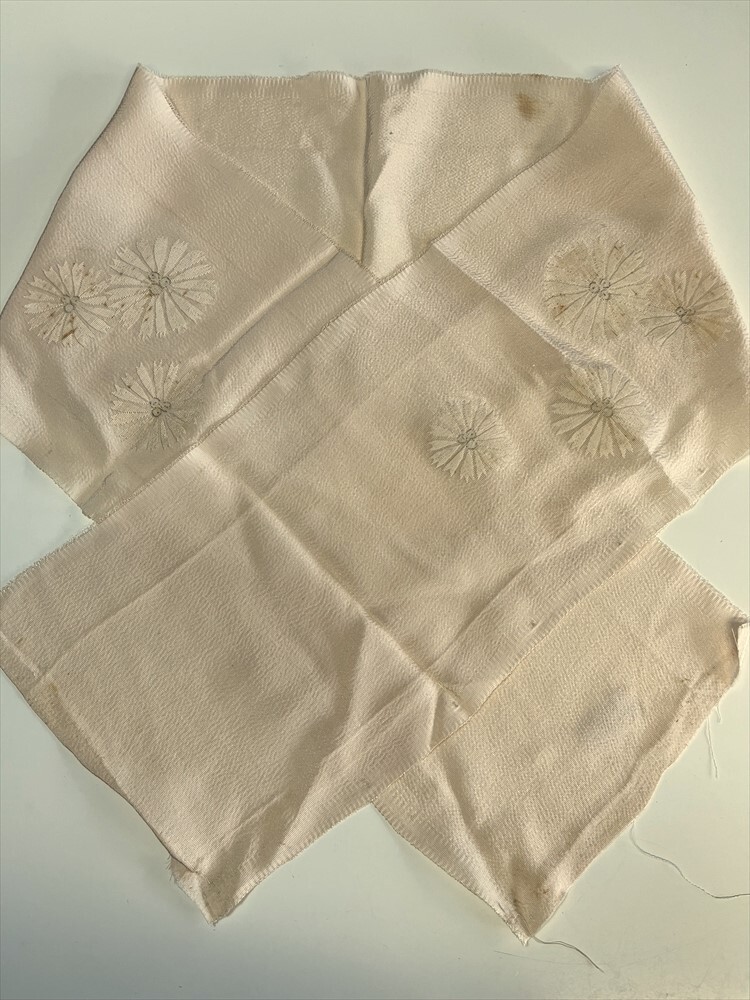 - 花とら●リサイクル和装小物 半衿 半襟 薄ピンク 薄ベージュ 刺繍 菊 リメイク 素材 細工用にも 250920