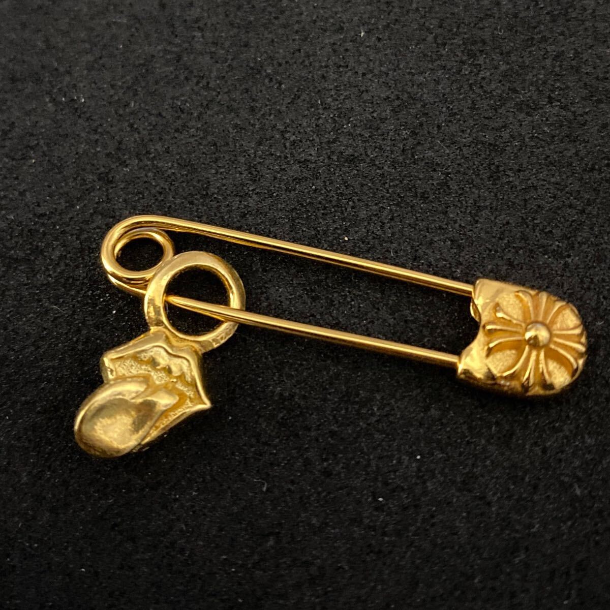 - シルバー925 ゴールド セーフティーピン ブローチ リップアンドタン チャーム