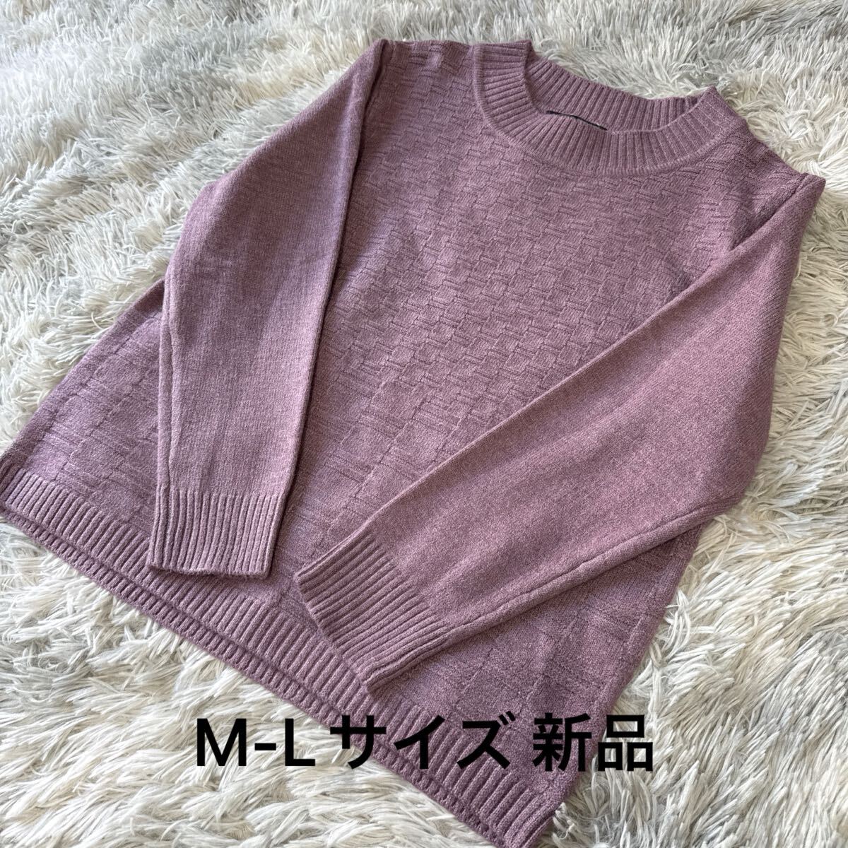 - 銀のすず ボトルネックチェック編み長袖ニットピンクM-L★ゆうパケット配送可能★新品18