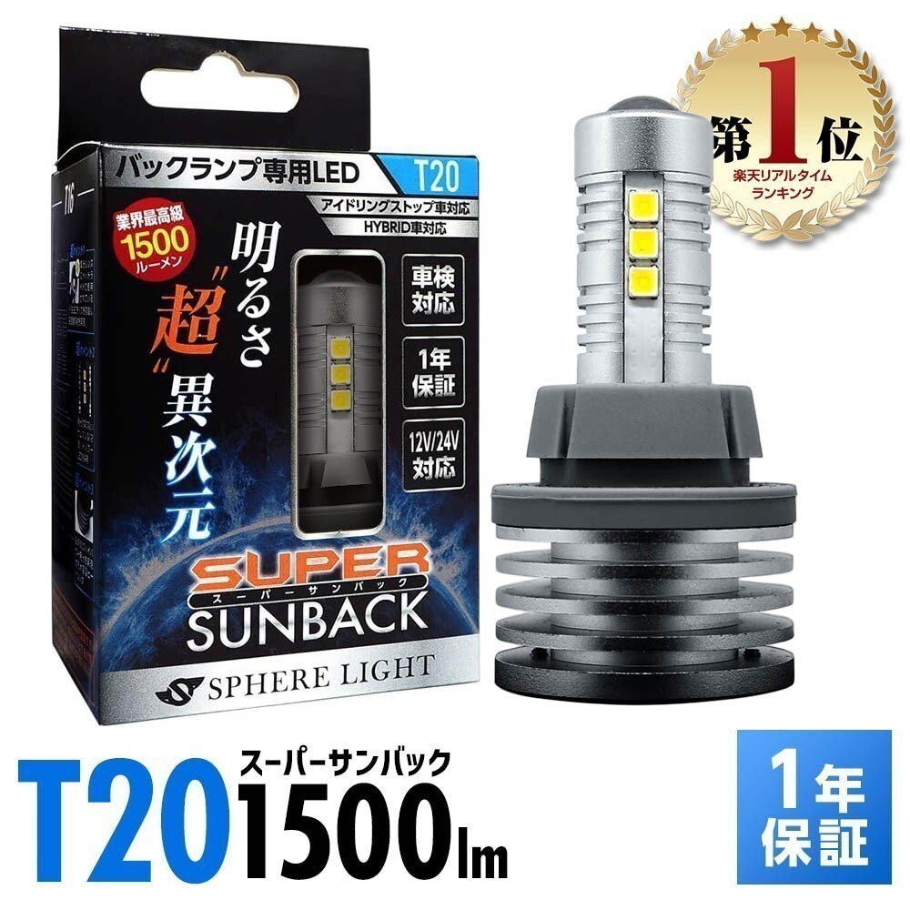 > スフィアライト バックランプ専用 LED スーパーサンバック T20 バックランプ 6000K 1500lm 12V 24V 車検対応 1年保証 SPHERELIGHT SSBT20