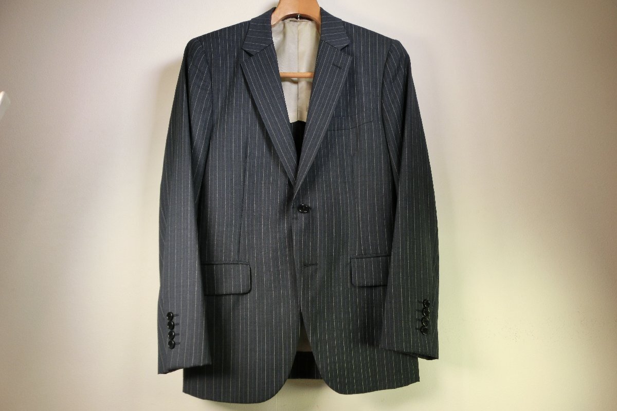 > ♪美品 春夏向き★TRECHENTOUNO/トレチェントウノ(S~M相当)★メンズ・ネイビーストライプウールスーツ「REDS」社インポート生地