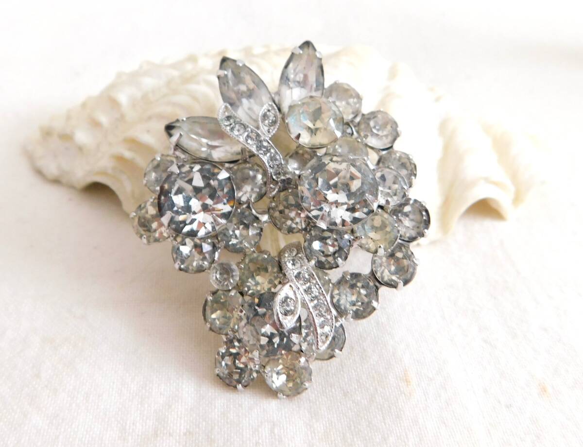 > ヴィンテージ EISENBERG ICE刻印 クリアラインストーンの豪華なブローチ EISENBERGICE ビンテージブローチ