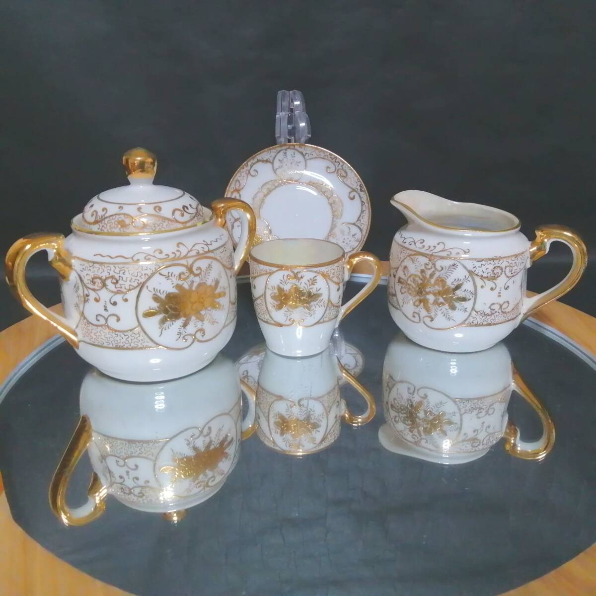 > オールドニッポン◆里帰り 滝藤商店 金盛 カップ&ソーサー クリーマー&シュガーポット セット ラスター調
