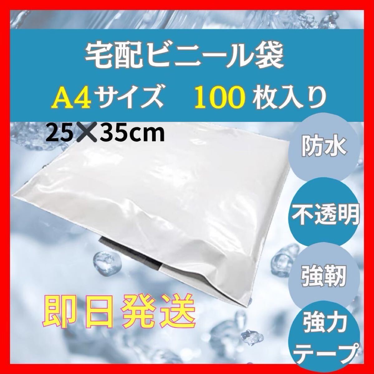 - A4サイズ ビニール袋 100枚入り 防水 強力 テープ 不透明 包装 OPP 梱包袋 宅配袋 梱包資材 A4 宅配ビニール袋