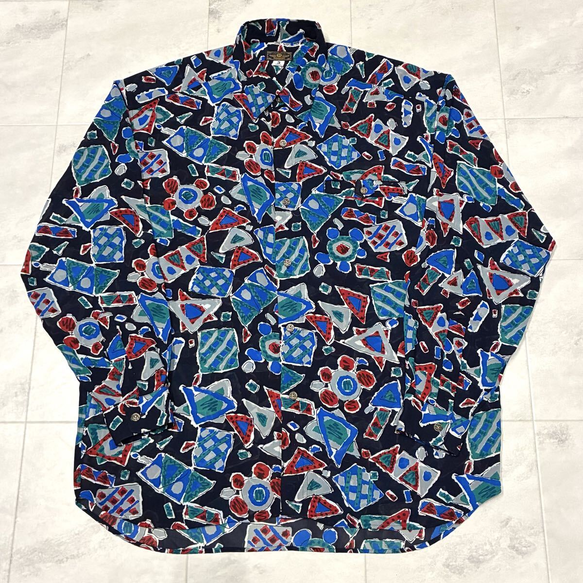 - HARDY AMIES ハーディエイミス 総柄 柄シャツ レトロ アート 長袖シャツ ポリエステル100%