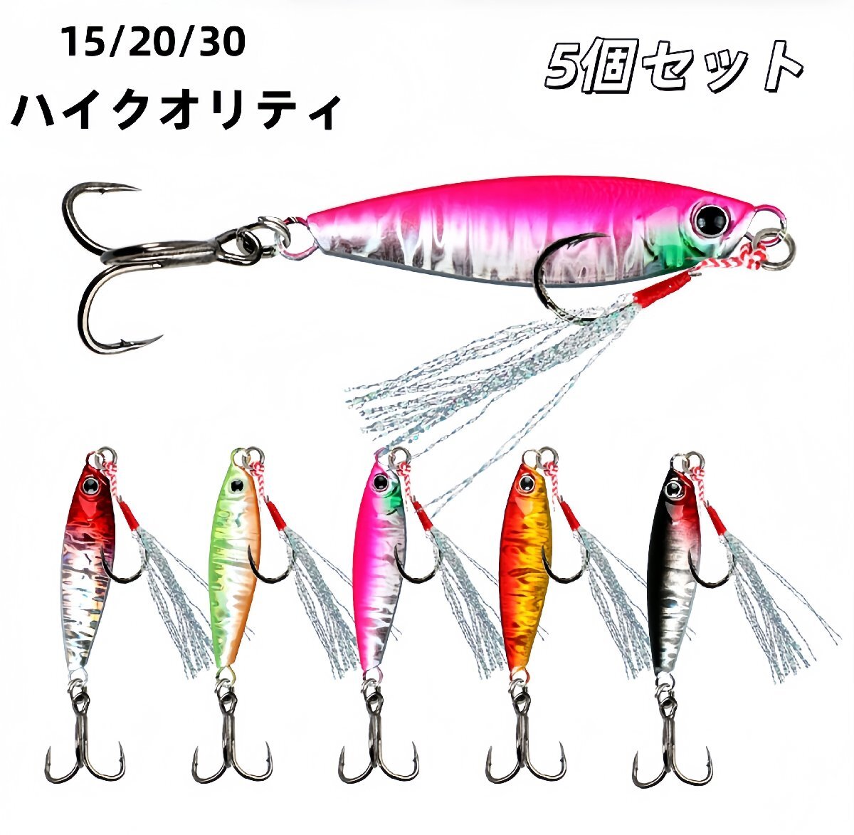 - 5個セット メタルジグルアー 15g 20g 30g アシストフック ルアー ワラサ ブリ タチウオ 釣り 海釣り 遠投式 スローシンキング